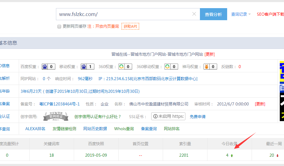 首先我們?cè)谡鹃L(zhǎng)工具查詢(xún),從上圖可以看出,今天收錄4條。