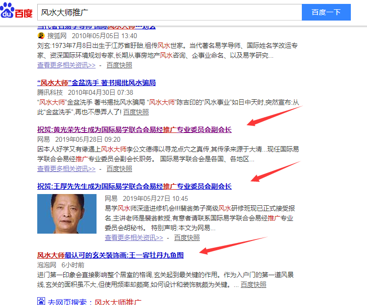 通過上圖我們可以看出,已經有易經風水行業的大師在通過新聞媒體發聲,包裝宣傳自己了,通過大型知名門戶媒體,發布新聞稿件,對于人物品牌形象的打造效果是最快最明顯的,網易、騰訊媒體都是中國四大門戶網站,在國人心中有著很好的地位,可信度極高。塑造人物品牌度和美譽度是最佳的選擇。