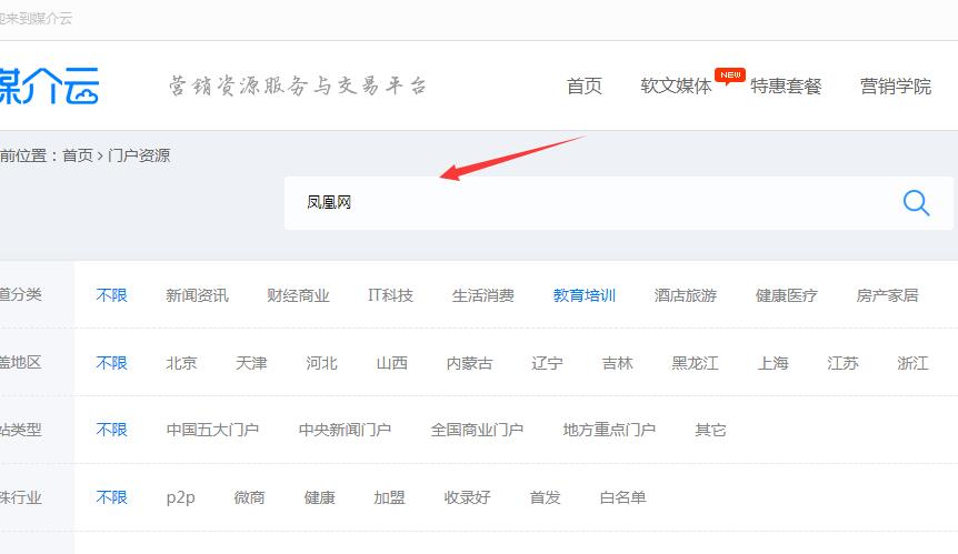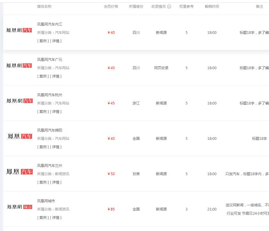 通過媒介云媒體列表可以查詢出關于鳳凰網的資源列表。